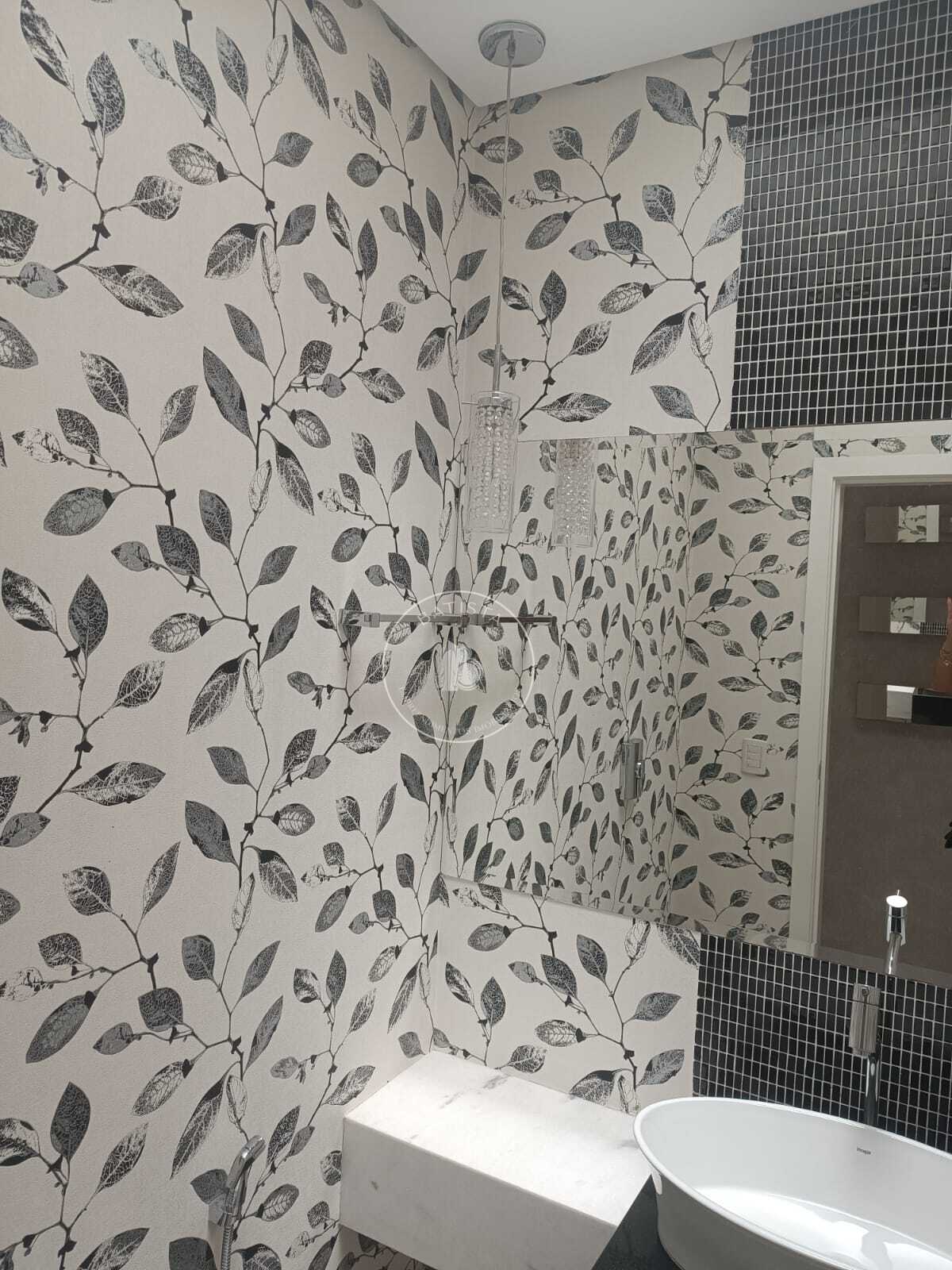 ✔ Sala ampla – Espaço elegante com papel de parede, persianas e excelente iluminação natural.